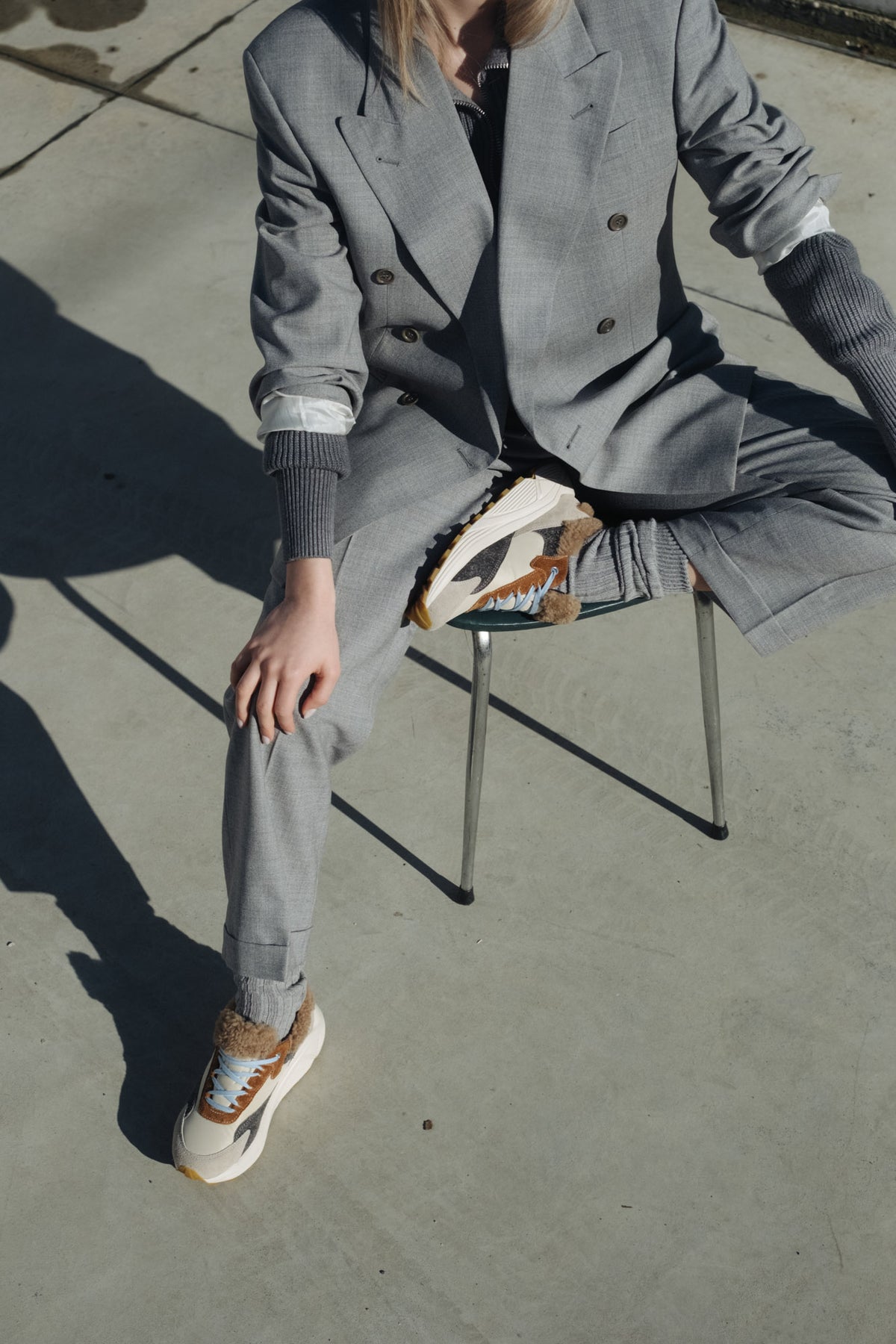 Fargepaletten i krem, karamell, steingrå og lyseblå detaljer gir et lekent, men sofistikert uttrykk, mens den solide sålen gir støtte og komfort gjennom hele dagen.
