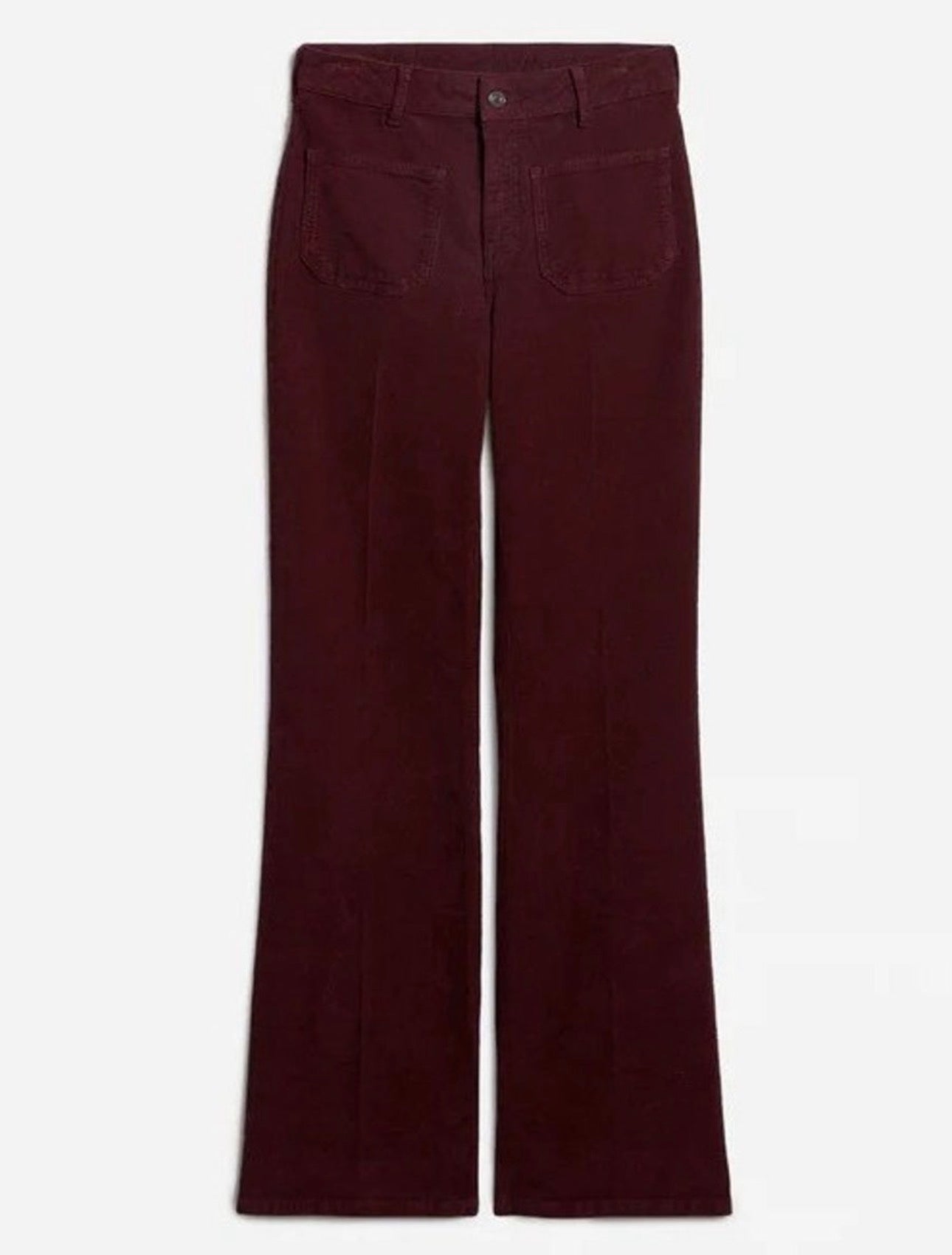 Dompay-buksen fra Vanessa Bruno er en elegant og tidløs modell laget i myk, delikat cordfløyel. Med sitt høye liv og lett utsvingte ben, gir den et flatterende snitt og en diskret retrofølelse – inspirert av 70-tallet. Påsydde lommer foran og flatterende plassering av baklommer.